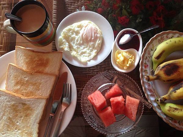 早餐很簡單,現煎的荷包蛋很好吃,比在曼德勒住的Sahara Hotel 的早餐, 那些吃不出味道的炒麵炒飯炒蛋...好太多了!and 咖啡終日免費供應^_^
