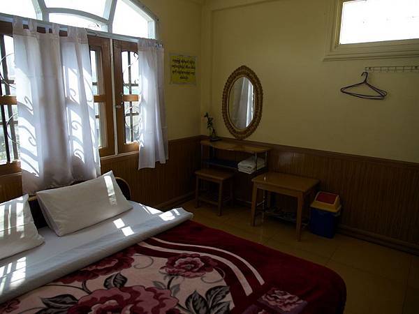 約一個多小時後到了小背包在彬烏倫的落腳處:Royal Flower GH /double bed / fan / breakfest / free wifi = NT$945 (agoda 訂房)。 這是家庭式經營的GH,房間 / 衛浴設備算是一般基本,並不特別好,但讓人難忘的是民宿一家人跟他的員工們,友善又很溫暖,要是你有什麼問題,他們會很自然的一家子都靠過來聆聽,然後大家都會想要出點子想幫你解決問題喔!不知道這是緬甸人友善的性格還是這家民宿的特質,讓你覺得大家都很關心你,但又不至於會有壓迫感,是一種發自於內心的純真與誠懇^_^ , tripadvisor 排名第三,推薦給大家囉!