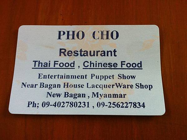 民風淳樸的蒲甘,不知道有沒有什麼夜店?!晚上在蒲甘,吃飯喝啤酒看足球賽,是小背包觀察最常見的餐廳景象,或者,來看木偶戲吧!這一家PHO CHO Restaurant,就在小背包住的Northern Breeze GH 路口,小背包是先來吃過午餐後才知道他晚上會演木偶秀喔!正常點餐或飲料即可,並不會額外收費^_^ !