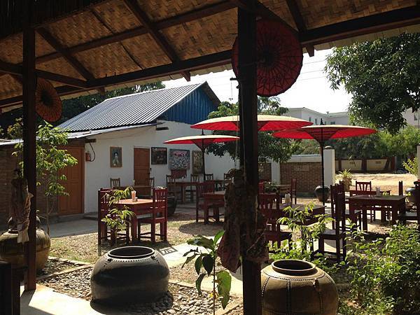 但正中午別傻了,熱到發昏,還是坐到屋簷下來涼快!牆上的紙傘,似乎是各個東南亞國家都有的傳統手藝,也很適合拿來當裝飾用品。